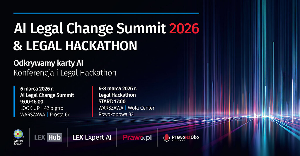 Jeśli chcesz zapisać się na konferencję AI Legal Change Summit 2026 oraz Legal Hackathon 2026, lub tylko na Legal Hackathon przejdź do formularza TUTAJ>>