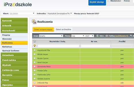 Ewidencja informacji o pobycie dziecka w przedszkolu w systemie Progman iPrzedszkole - operacje w kontekście naliczania/rozliczania opłat